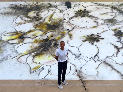 2015年7月11日~10月18日まで横浜美術館で「蔡國強展:帰去来」が開催。蔡國強(さいこっきょう/ツァイ・グオチャン)氏の代表的な手法である「火薬ドローイング」の制作風景が、6月20日に報道陣に公開されました。 ▲火薬ドローイング制作風景を公開した蔡…