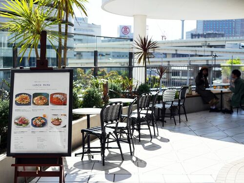 ▲広々としたテラス席が印象的な「tables cook & LIVING HOUSE(タブレス クック アンド リビングハウス)」(2017年4月28日撮影) 横浜駅東口のショッピングモール・横浜ベイクォーター4階に、横浜初登場となる大阪・南堀江発のインテリアショップ「リビング…