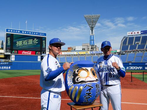 横浜DeNAベイスターズの必勝祈願が2024年2月28日に横浜スタジアム(ハマスタ)で開催されました。三浦大輔監督と牧秀悟キャプテンが「必勝だるま」に目入れを行い、優勝を誓いました。