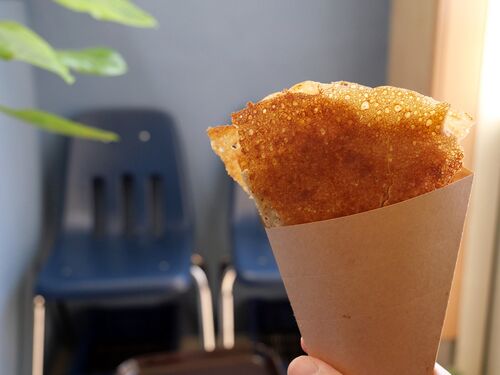 2024年9月にオープンしたクレープ専門店「コマド」へ。オーダー後に1枚ずつ焼き上げる、パリパリ食感のクレープは病みつきになるほどのおいしさです。
