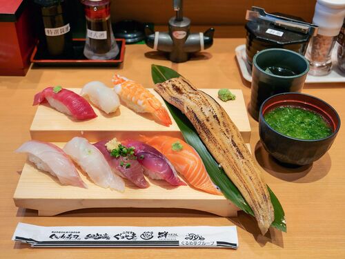 神奈川県のローカル回転寿司チェーン「二代目ぐるめ亭 CIAL桜木町店」へ。17:00までの平日限定ランチで「大名穴子と豊洲鮮魚の四季彩握り」を食べました。穴子が1本ドーンと!